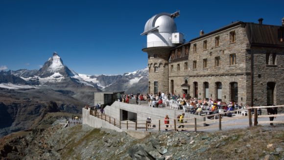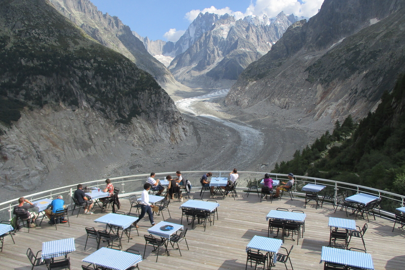 シャモニーの町から登山電車で訪れるモンタンベール展望台からはグランド・ジョラスとその下に広がる氷河がご覧いただけ、氷河の推移を感じることができます。