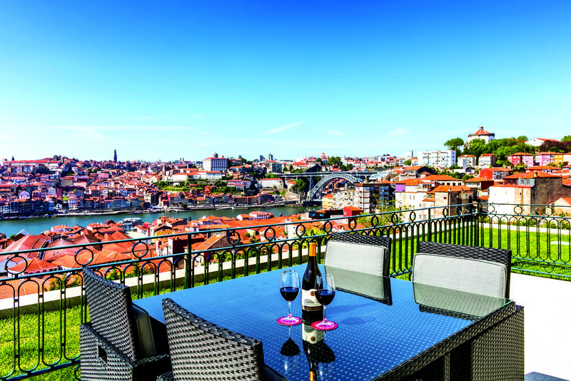 ポルト旧市街とドウロ川の壮大な景観を臨む丘の上に建つホテル。