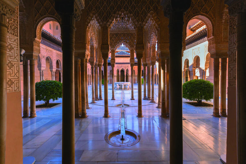 古都グラナダの丘の上に静かに佇む壮麗なアルハンブラ宮殿は、スペインにおける中世イスラム建築を代表する建物で、幻想的なアラブ様式の広がるナスル朝宮殿は、見逃せないアルハンブラ宮殿の中心です。