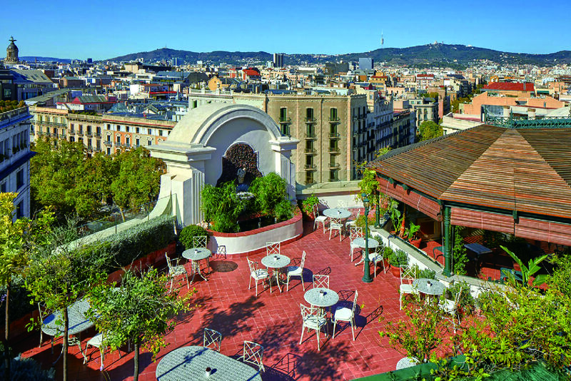 屋上テラスは、噴水など緑に囲まれた開放感なガーデンになっており、バルセロナの美しい街並みが一望できます。グラシア通りからもほど近く、観光や散策に便利な立地です。