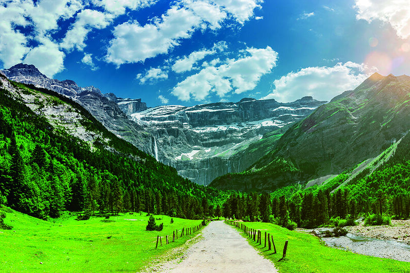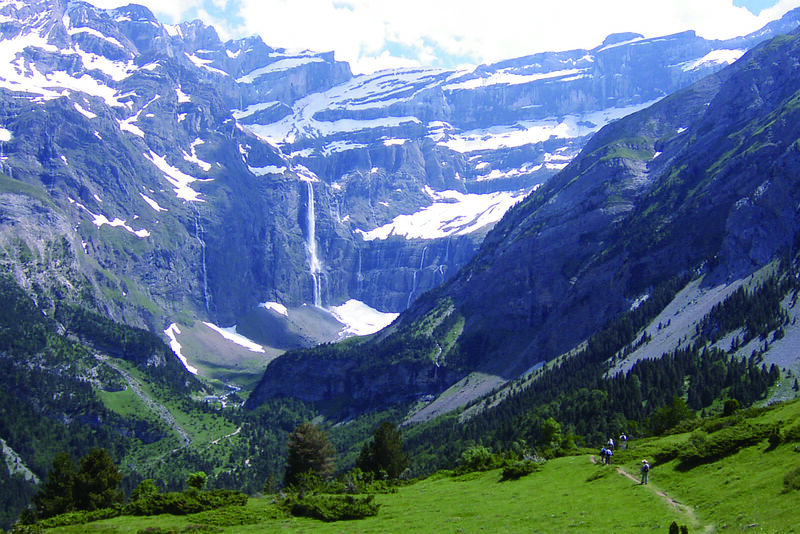 フランスとスペインとの国境沿いに広がる東西約430㎞の山脈です。最高峰のアネト山(3,404m)を中心に3,000m級の山々が連なります。中世は「ピレネーを越えるとそこはアフリカだった」といわれ、イスラム勢力の侵略を防ぐ役目も果たしていたピレネー山脈では氷河に大峡谷、お花畑、美しい湖水など変化に富んだハイキングを楽しむことができます。