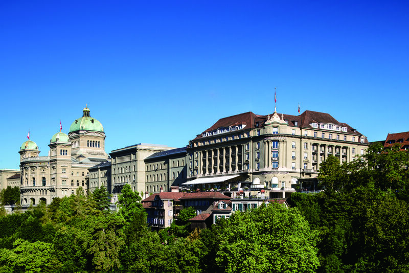 スイス政 府 の 公式迎賓館として、150 年の歴史を持つグランドホテル。連邦議会議事堂の隣に建ち、荘厳な建物は街のランドマークにもなっています。
