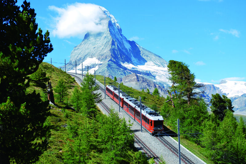 スイスを代表する名峰マッターホルン。鋭角にそびえるその美しい姿は多くの人々を魅了しています。麓の街ツェルマットから登山列車を利用してゴルナーグラート駅へ。展望台からはマッターホルンをはじめゴルナー氷河、モンテ・ローザなどアルプスの4,000m級の山々が織りなす絶景が広がります。ご希望の方は復路、逆さマッターホルンを望むハイキングへご案内します。