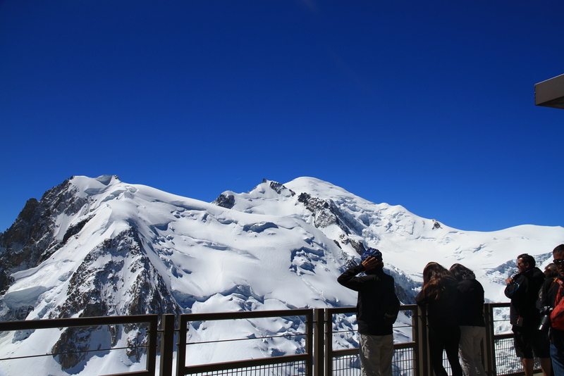ヨーロッパ最高峰モンブランが迫るエギーユ・デュ・ミディ展望台へはロープウェイを乗り継いで訪ねます。