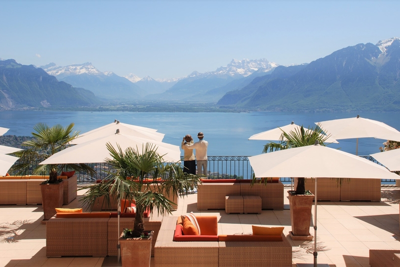 周辺には世界遺産に登録されているラヴォー地区のぶどう畑が広がり、テラスからはレマン湖のパノラマが広がります。レマン湖側のお部屋をご用意しました。