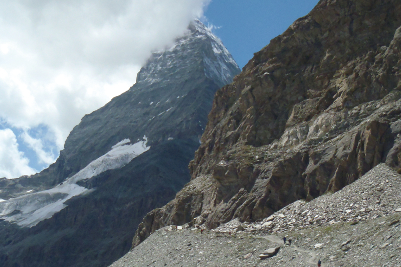 シュヴァルツゼー(2,583m)よりマッターホルンの登山基地でもあるヘルンリ小屋(3,260m)を目指してマッターホルンの登頂気分を味わいながら往復約6時間のトレッキング。