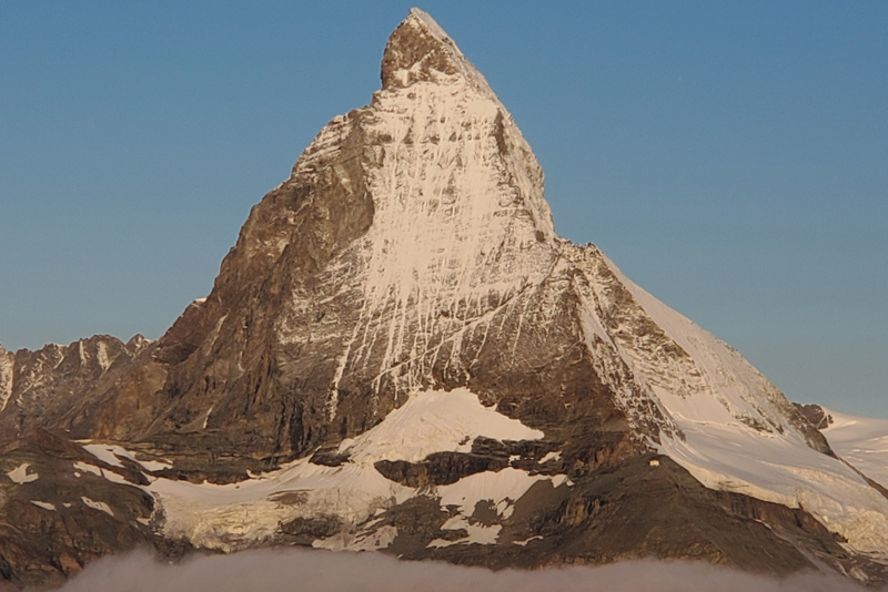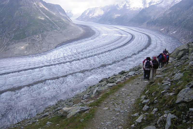 マッターホルンは張り付くように見上げながら歩き、ヨーロッパ最大最長を誇る世界遺産のアレッチ氷河を目の当たりにする壮大なトレッキング。そして絶景を望む二つの山岳ホテルにも宿泊する、スイスへ行かれた方にもおすすめしたいコースです。