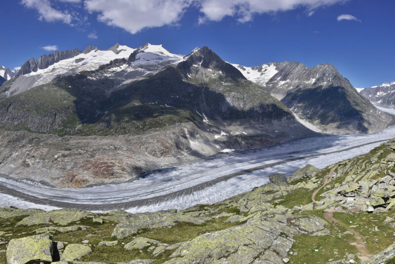 ヨーロッパ最大かつ最長の長さ23kmにも及ぶ世界自然遺産にも登録されている氷河の迫力を体感しながらの絶景をお楽しみください。夏になると世界各国からトレッキングを楽しみに訪れます。