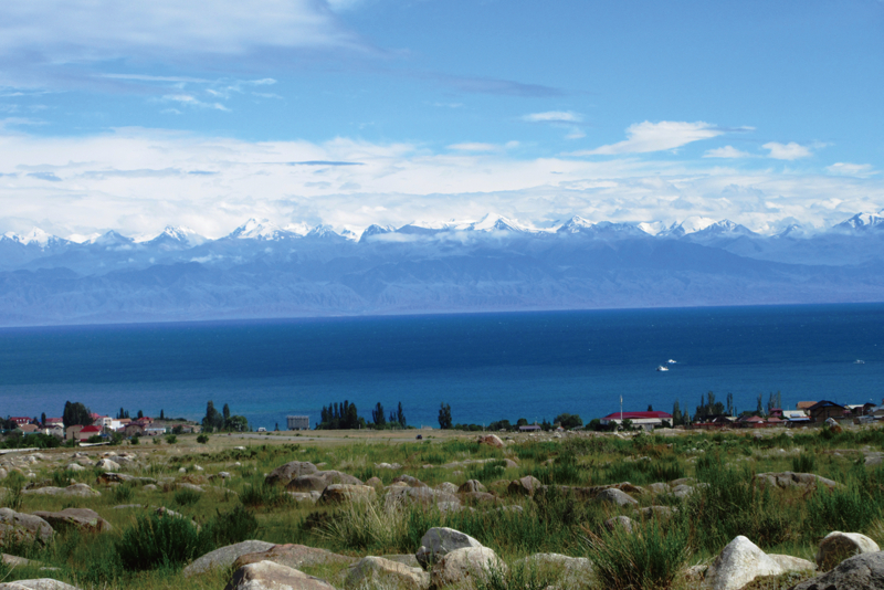 背後に天山山脈が連なる群青の湖イシククル湖。海を持たない中央アジアの人々にとって憧れの湖です。