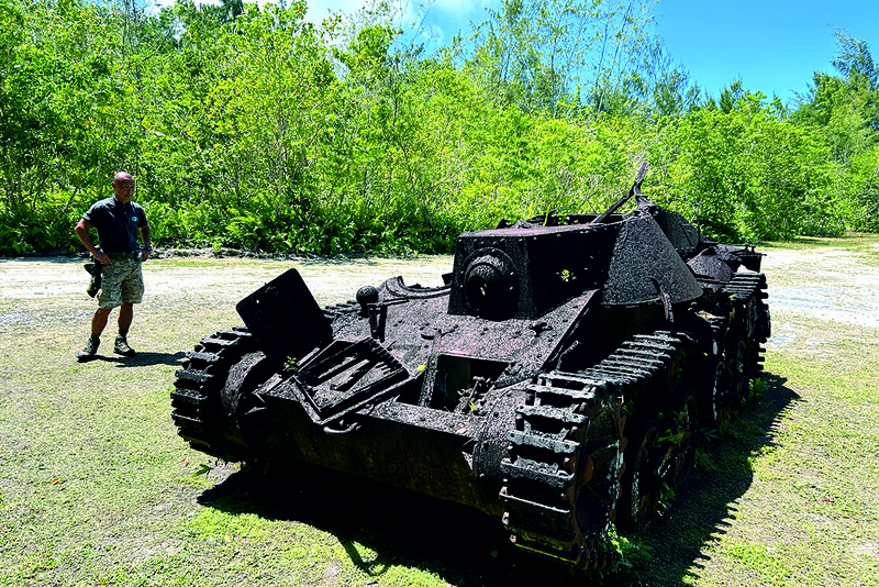 美しい島内に旧日本軍の司令部跡や大破した戦車など、いまだに多くの戦跡が残されています。戦争の様子を物語る戦車や大砲などが今もそのまま残されていて、当時の様子を物語っています。