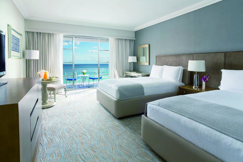 陽の射すお部屋は、明るい色で統一され清楚で上品な印象。お部屋にはバルコニーがあり、果てしなく広がるコバルトブルーのカリブ海を見渡すことができます。