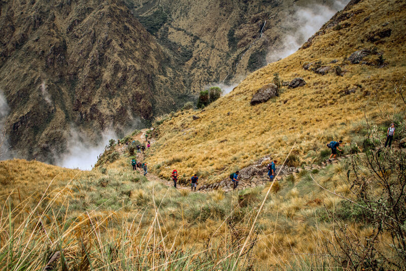 約43kmのインカ道を1日6~8時間かけて3泊4日で歩きます。標高差は登り下りともに1,000m以上で、トレイルは石畳など概ね整備されてはいますが、アップダウンのある高所トレッキングとなるため、山小屋泊やロッジ泊など縦走経験のある方向けとなります。