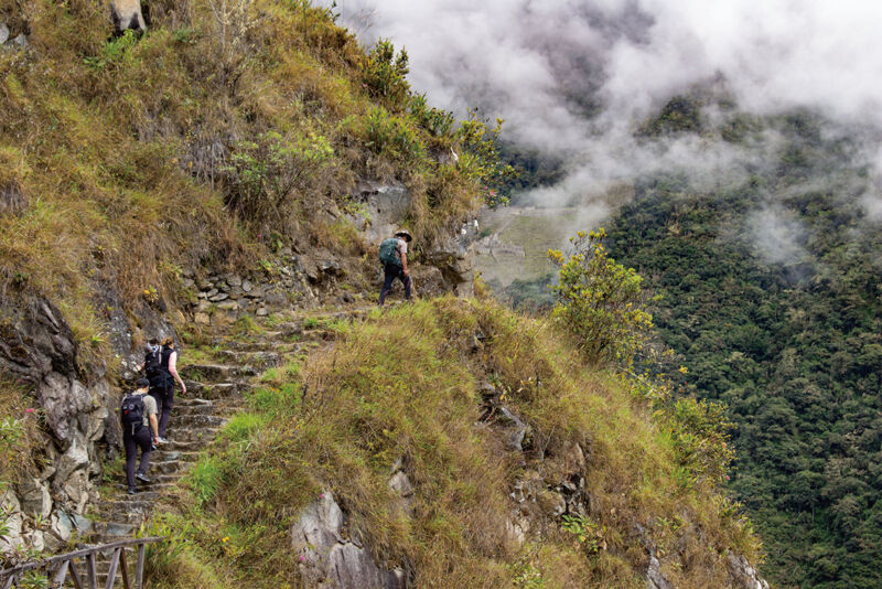 古代インカ帝国が築いた壮大な石畳の道を4日間かけてマチュピチュ遺跡へと踏破する歴史の旅のトレッキングルート。総距離は約43km、標高4,000m以上の峠を越えながら、ジャングルや雲霧林、アンデスの花々や野鳥、山岳風景など変化に富んだ大自然と、道中に点在するインカ遺跡を訪ねながら歩きます。最大の魅力は、苦労して歩いた最後にゴール手前にある「太陽の門」から初めて目にするマチュピチュ遺跡は、決して他では味わえない感動を与えることでしょう。