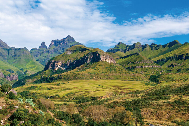 「龍の山々」を意味するドラケンスバーグ。特異な自然景観と多様な生態系、さらには岩絵なども残されていることから世界複合遺産に指定されています。