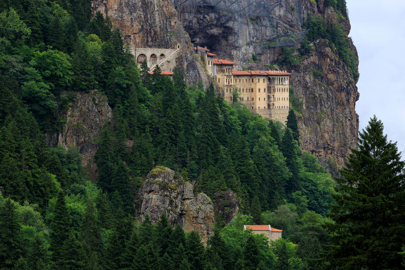 1日 日本語ガイド同行 断崖に建つキリスト教の修道院・スメラ僧院観光 ミニバス(混乗)に乗り換え僧院のある山上へ移動 坂道、急な階段を約30分ほど進み僧院内へご案内