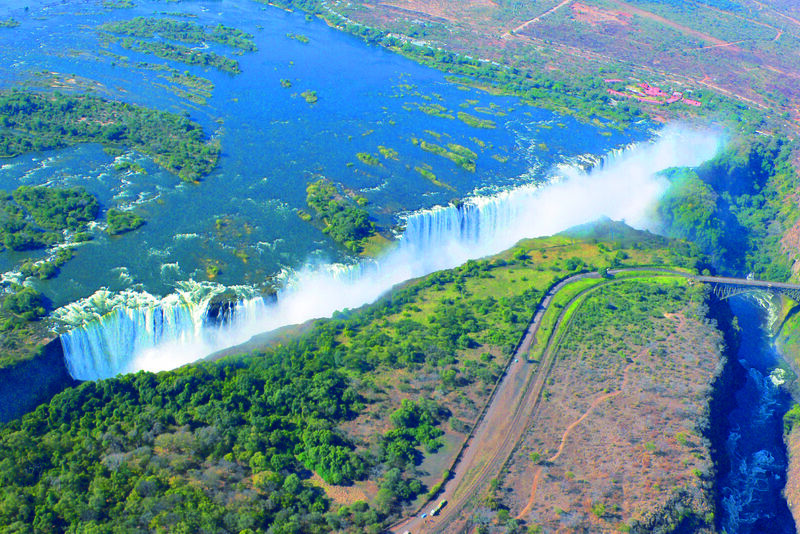 ◆世界三大瀑布のひとつビクトリアの滝はザンビアとジンバブエ両国側の見学に加え、ヘリコプターによる遊覧飛行で上空からの景色も堪能。