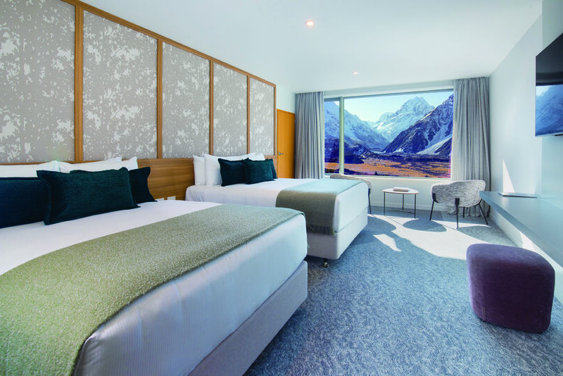 ◆マウントクックでは国立公園内唯一のホテル、ハーミテージに2連泊。上層階に位置するお部屋「プレミアムプラス」をご用意しました。